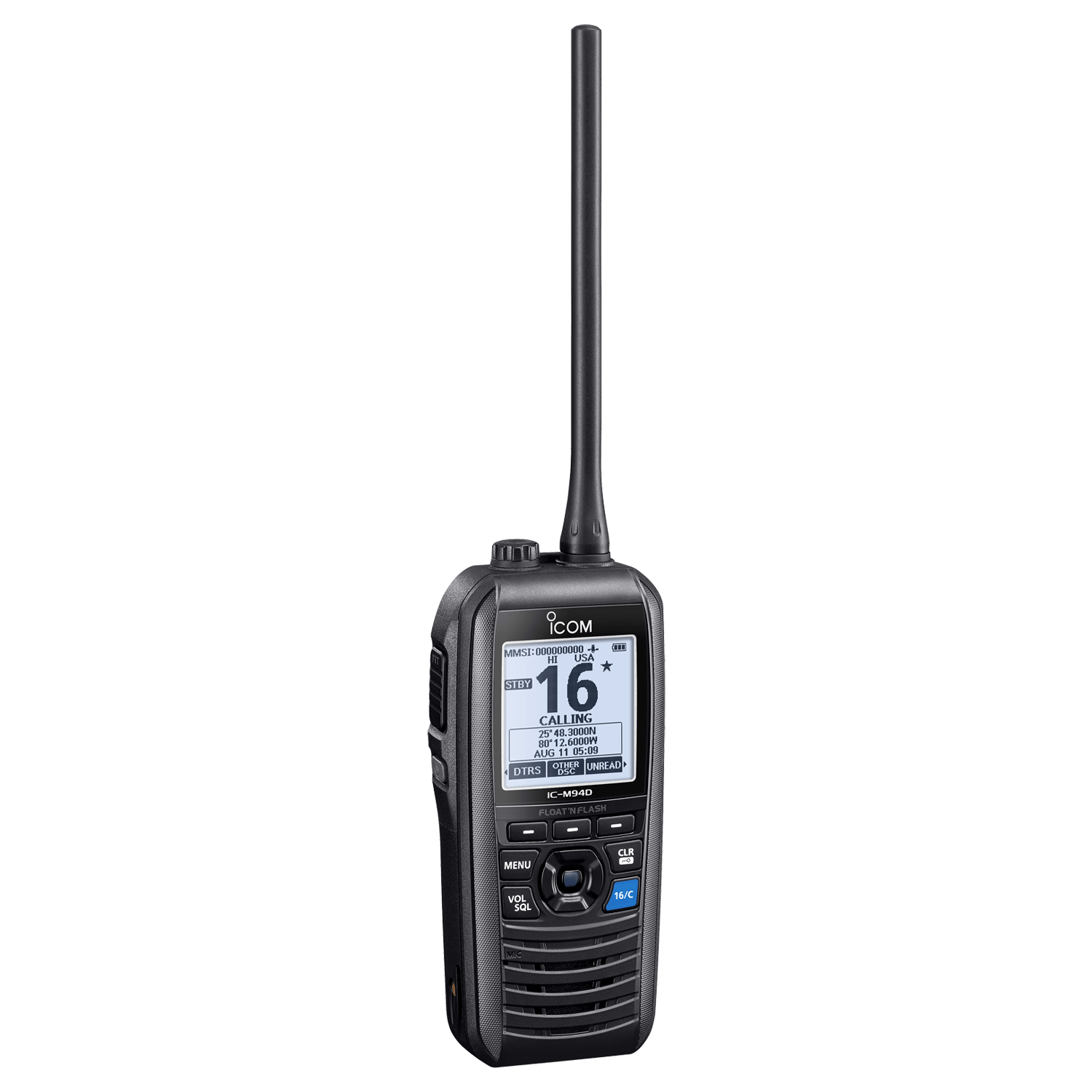 Icom’s M94D is a Class-H DSC VHF transceiver and is the world’s first handheld to possess the power of AIS. A class-leading 1500 mW speaker and ocean-conscious features, the M94D is perfect for small boats and leisure craft looking to stay safe and informed on the ocean.