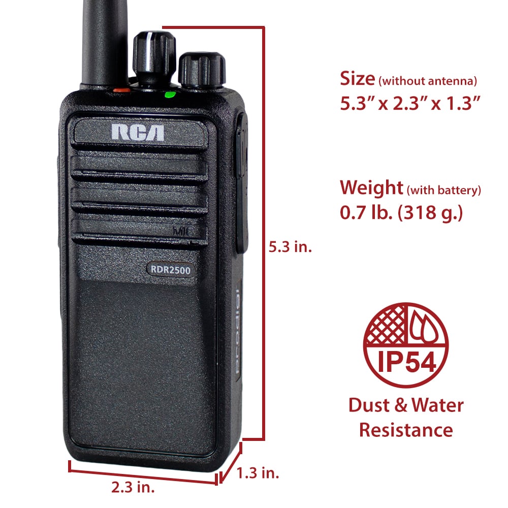 Designed with X-Sound+ HDTM for exceptional voice quality. The RDR2500 series radios provide loud 1 Watt of power audio, at the same time eliminating background noise and static from the voice transmissions and delivering crystal clear voice message which results in a better, improved radio coverage.