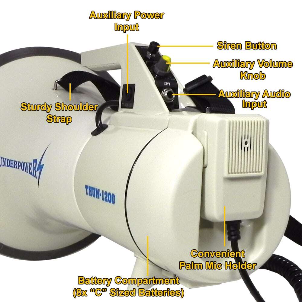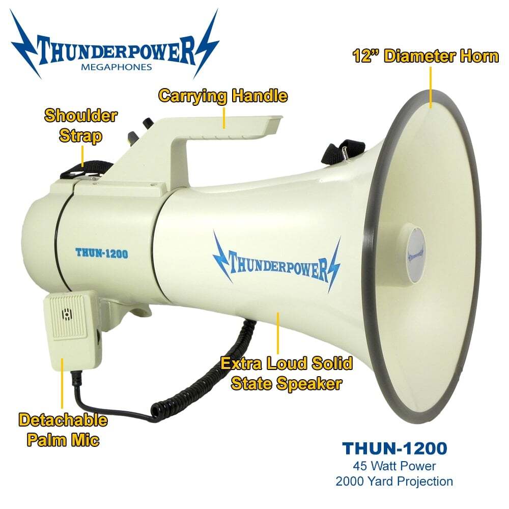 We call the THUN-1200 the Earthquake Maker because it can literally clear the streets and rattle the windows! This is not your average megaphone that simply elevates your voice a little. The THUN-1200 is designed for industrial uses like:
