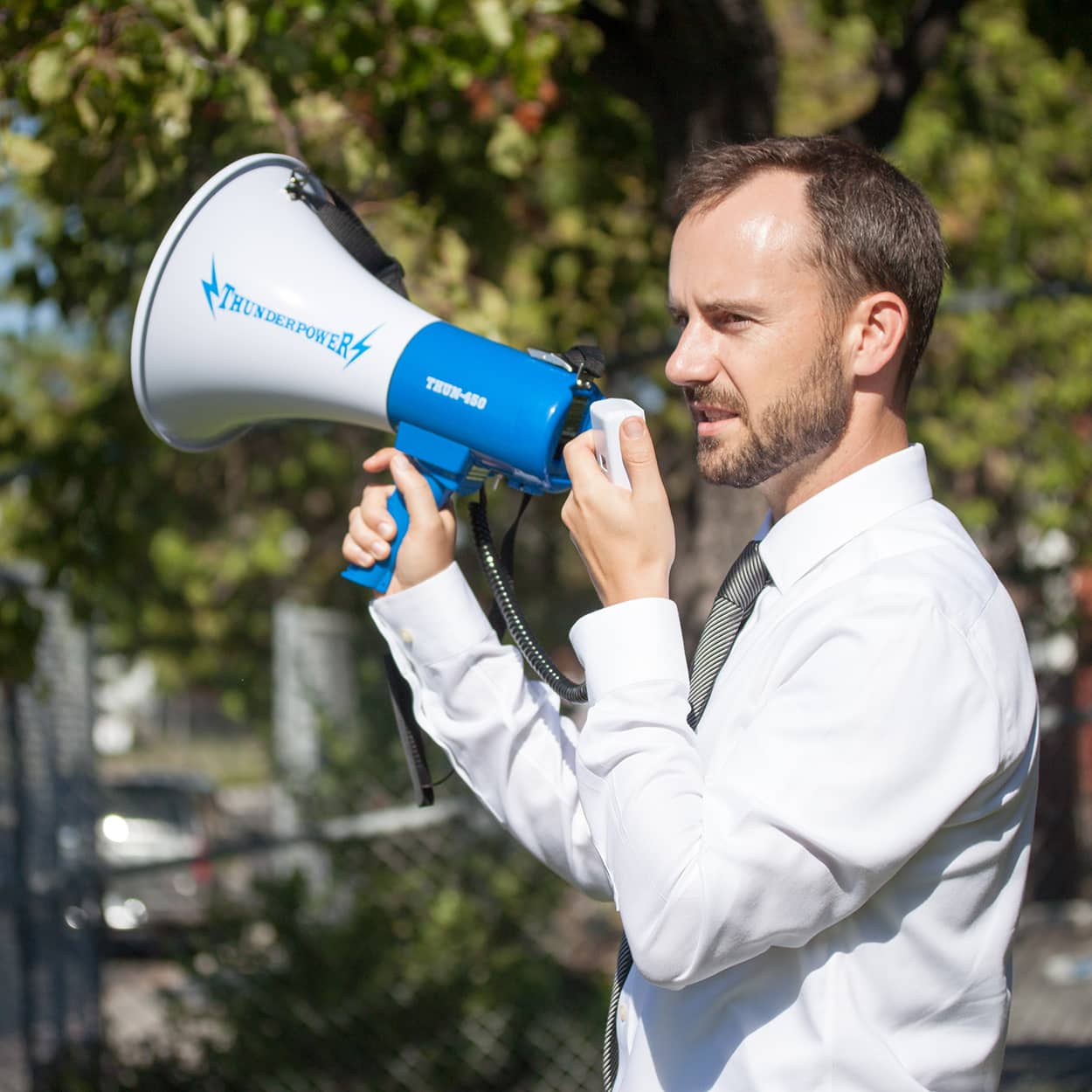 - Sporting Events: While many sports have deemed megaphones illegal to use during official play, there are lots of opportunities within the sporting world to take advantage of ThunderPower 450’s power. For example, youth soccer registration and tryouts are always chaotic. However, using a loud megaphone can help keep the event organized and moving a long on a timely basis. American football team practices are often carried out across 100 yards of open field, making it impossible for players on one side of the field to hear coaches on the other side. The more ground that needs to be covered, the more power you need behind your voice. That’s why the ThunderPower 450 is a great tool for coaches and athletic organizations.